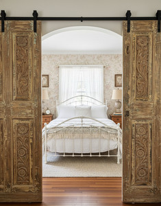 To infuse your home with the refined elegance of a boutique-style hotel, start by focusing on curated décor that reflects your personal style. Statement barn doors, like those with intricate carvings or bold finishes, can serve as both functional elements and stunning focal points, adding a touch of luxury to any space.