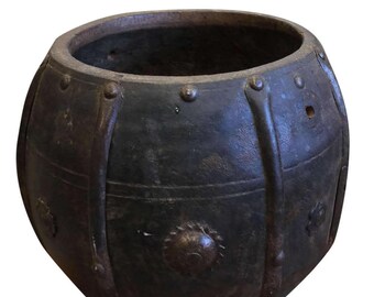 Antique Iron Metal Pitcher Water Pot of Ancient Time Iron Nailed Rustic Handmade Artisan Decorative Home Decor
