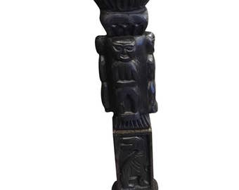 Antique Planter Urn Hand Carved Tribal Man Animals Old Wood Unique Industrial Forest Interior