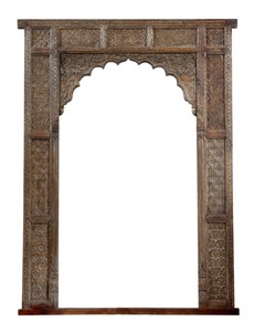 Vintage Arch Indian Doorway Floral Hand Carved Wooden Architectural Design 95x56