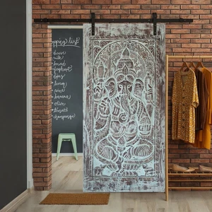 Opt for vintage carved barn door sliders to introduce an eclectic charm to your interiors. Intricate designs like brass-studded panels or traditional lotus motifs add a bold, artistic touch to modern apartments. Sliding doors not only conserve space but also act as stunning focal points that blend functionality with aesthetics.