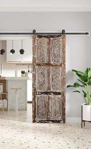 In this transitional space, an antique carved wood dresser becomes the anchor — rich in texture, detailed in design, and full of soul. Its aged patina and intricate craftsmanship bring a sense of heritage, grounding the room in warmth and authenticity.