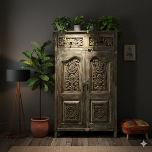 pieces that carry history and soul. Vintage furniture and antique carved doors
