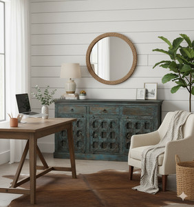 One of the most important aspects of the rustic design style is natural wood. It is a symbol of practicality and simplicity. Reclaimed wood armoires with natural textures and rustic patinas, are earthing and grounding bring in the mindfullness of using earths limited resources.The reclaimed wood doors used in cabinets and chests are repurposed from Indian doors carved beautifully in nature inspired designs. Shop At Ebay Mogulgallery
