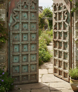 Arches and columns are found throughout the house, cusped doorways, beautiful dark wood carved accent doors and windows, mantles that display treasures from your travels. The antique triple arched architectural veranda accents the view to the courtyard where sits a beautiful three tiered fountain. An antique door in dark teak and gorgeous carved detail is seen with climbing ivy and moss giving the soft warmth of aged wood and old bygone days. Sun soaked doors and the resplendent rustic architecture brings in the classic ambiance of Tuscany. Unpretentious colors and natural fabrics like handloom cotton bed throws and silk curtains accent the flavor. Bold designs and patterns complement the design, be it modern contemporary or traditional style. Shop At Ebay Mogulgallery