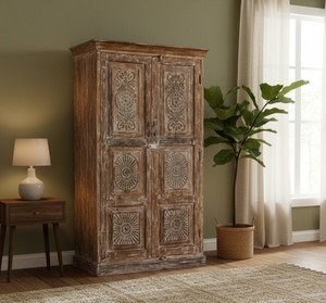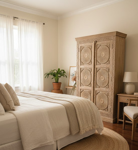 The best Southern décor tells a story. That's why artisan-crafted carved armoires fit so seamlessly into these spaces. Often made from reclaimed Indian teak wood, they bring a global connection to the deeply personal Southern aesthetic.